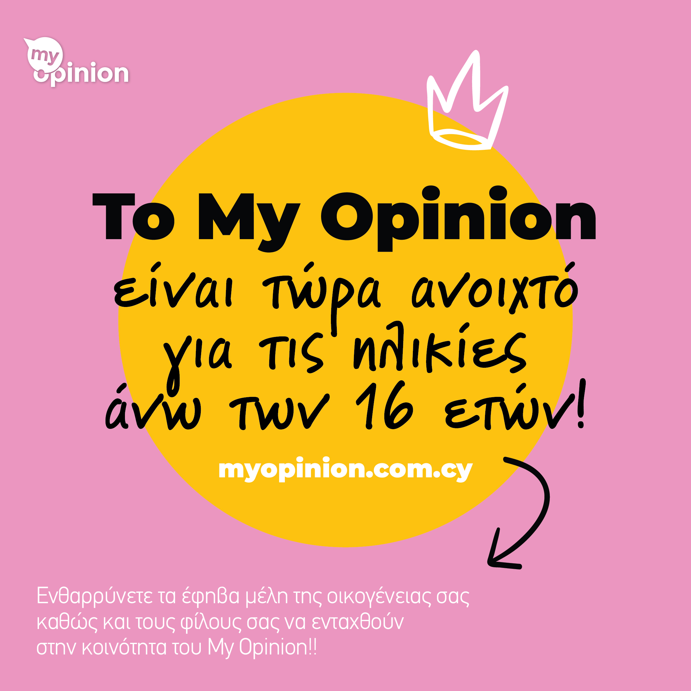 Συναρπαστικά Νέα! Το MyOpinion είναι τώρα ανοιχτό για τις ηλικίες άνω των 16 ετών!